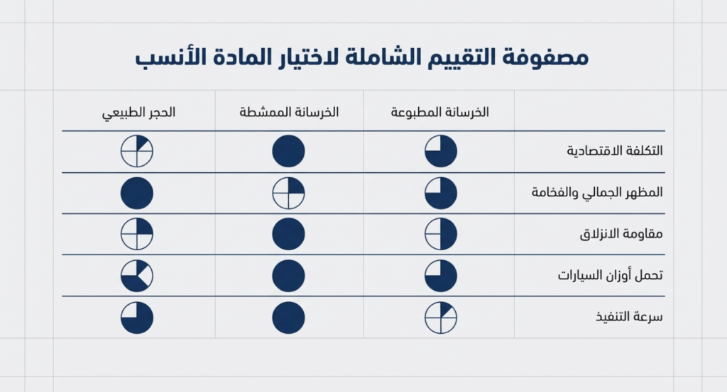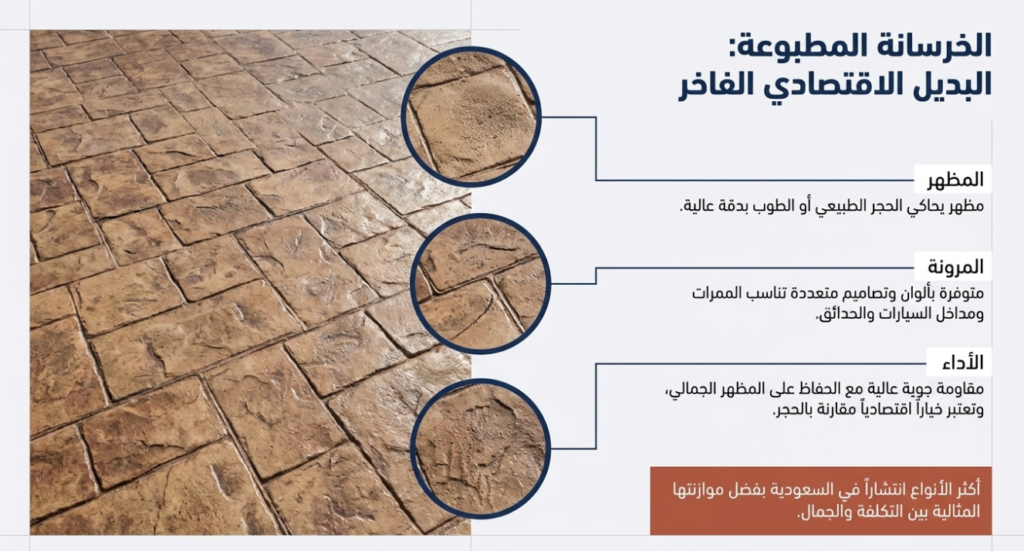 بعض الأنواع مثل الحجر الطبيعي تكون أعلى تكلفة من الخرسانة المطبوعة.