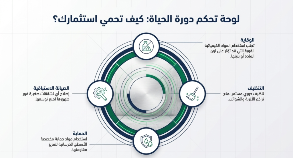 - استخدام مواد حماية خاصة للأسطح الخرسانية.