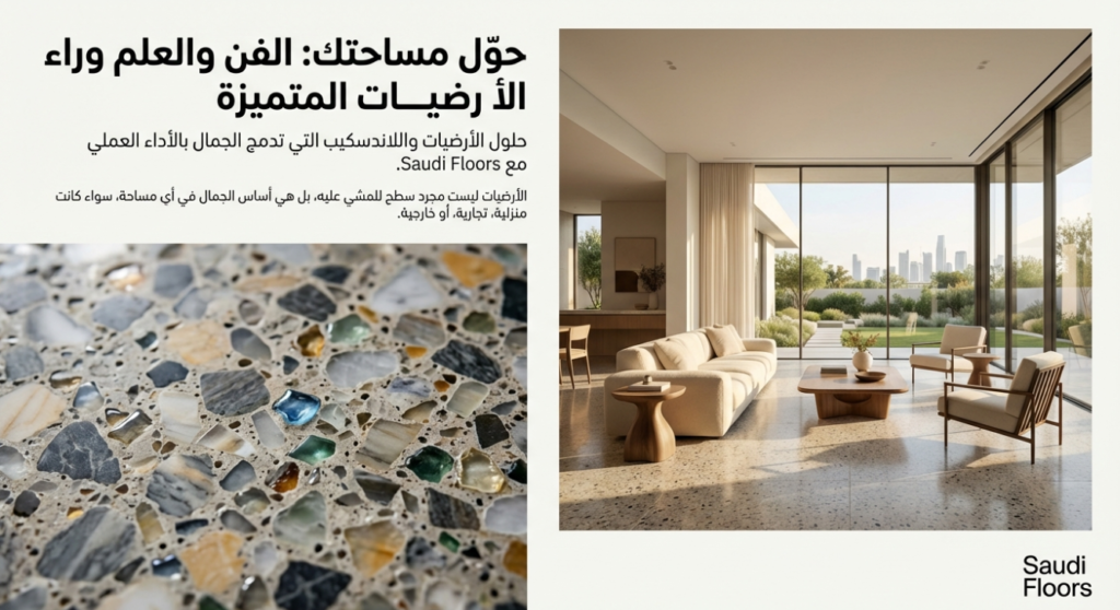 تخيل منزلًا حيث الأرضية الداخلية من التيرازو تتناغم مع باحة خارجية من الخرسانة المطبوعة، محاطة بالمساحات الخضراء، أو فناء تجاري حيث الأرضيات تقود الزوار بسلاسة بين الداخل والخارج. هذه هي الخبرة التي تقدمها Saudi Floors.