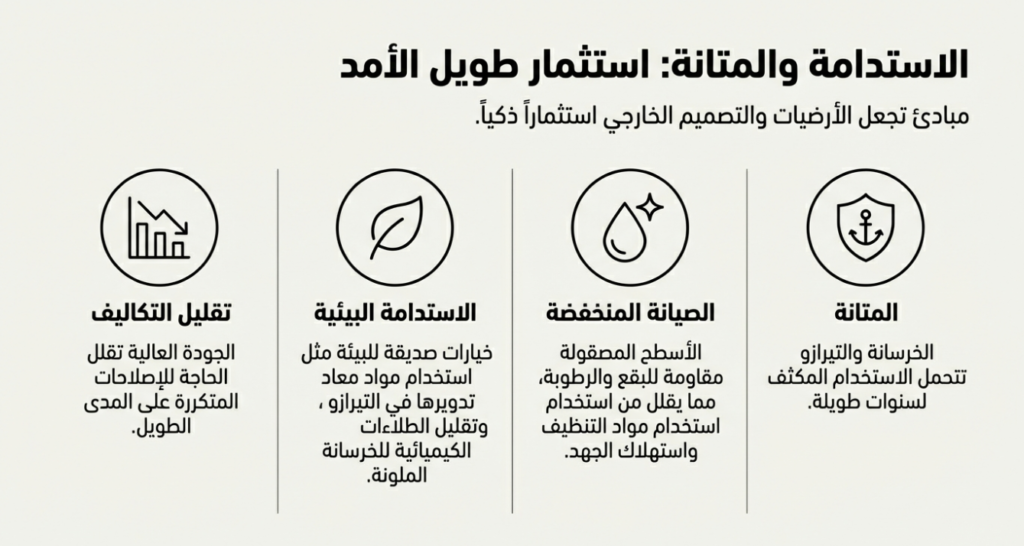 هذه المبادئ تجعل الأرضيات والتصميم الخارجي استثمارًا طويل الأمد.