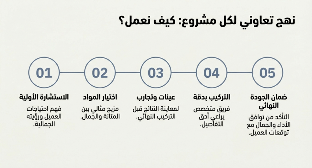 نجاح المشروع يعتمد على التعاون بين العميل وفريق التصميم. خطواتنا تشمل: