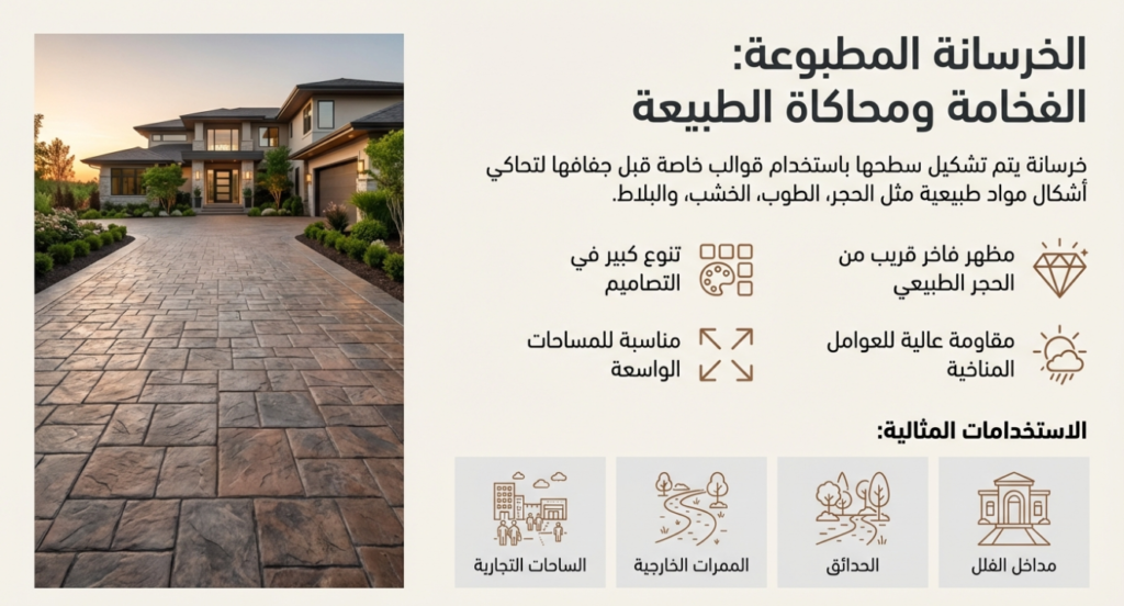يعتمد الاختيار على عدة عوامل أساسية:✅ اختر الخرسانة المطبوعة إذا: