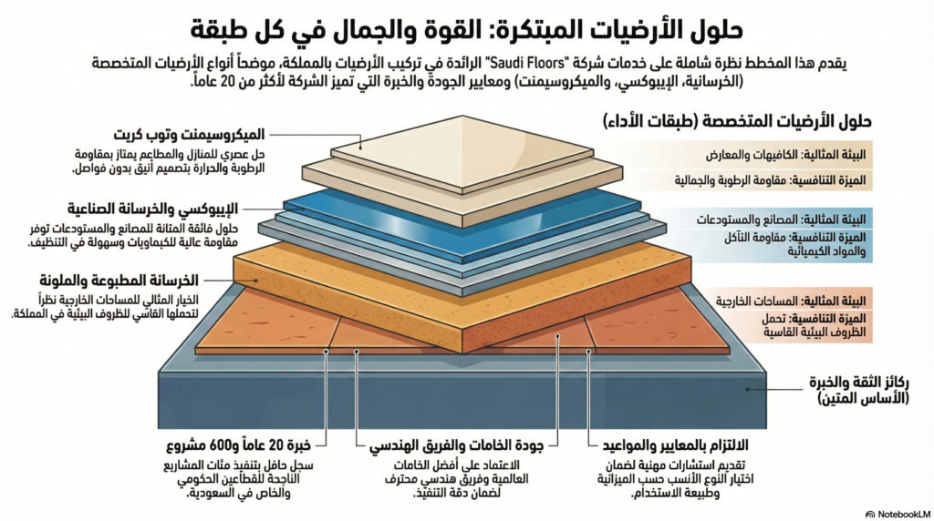 اختيارك لشركة تنفيذ الأرضيات يؤثر بشكل مباشر على جودة المشروع بالكامل، وهنا تبرز مميزات Saudi Floors Company: